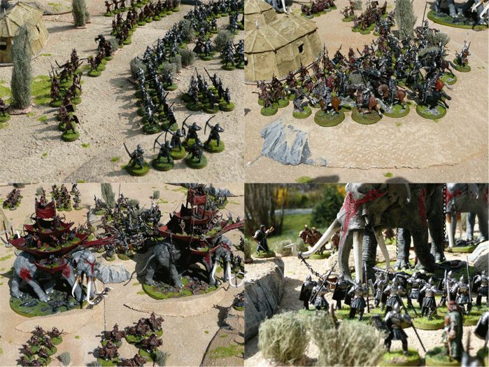 Ce plateau de 100/140cm représente la région désertique du sud du Harad, là où les troupes de Minas Tirith ont combattu les Haradrim sur leurs puissants Mumakil et leurs alliés les Orientaux, les Mahuds et les pirates d’Umbar.